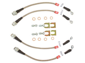 1997-2004 Corvette Stainless Steel Braided Brake Hose Set  - D.O.T Compliant, 4-hoses, 4-Banjo Bolts, 8-Banjo Washers, and 4-Hose Clips